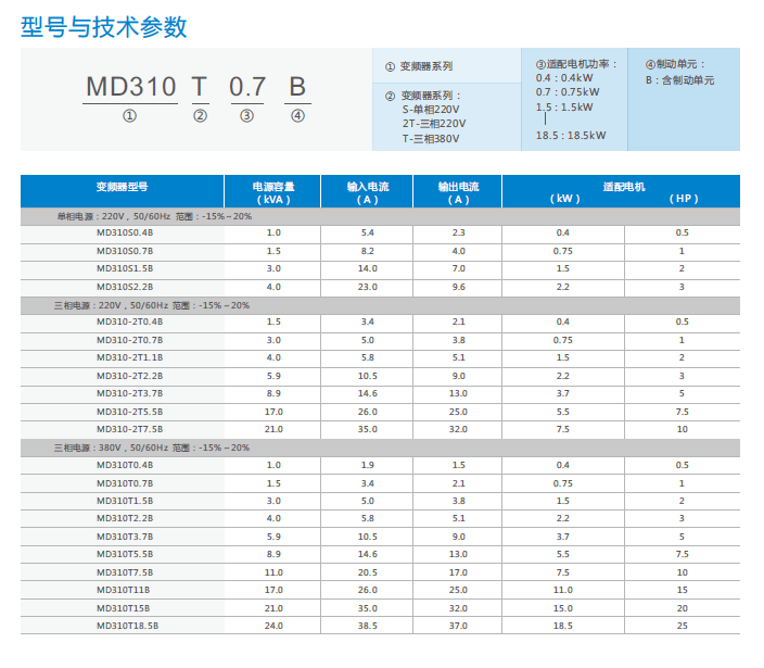 MD310系列變頻器是一款通用緊縮型多功能變頻器,采用開環(huán)矢量和V/F控制方式,以高性能的電流矢量控制技術(shù)可實(shí)現(xiàn)異步電機(jī)控制,功率范圍覆蓋0.4kW~18.5kW。自帶485 通訊口。