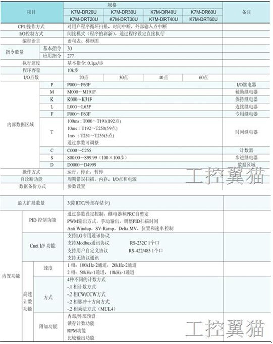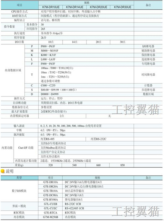 -總共可擴展到70點(可以連接2個擴展模塊;僅可以連接一個通訊模塊)